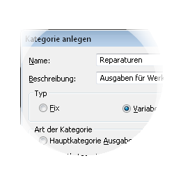 Der Finanzmanager stellt dazu einen Pool an Kategorien