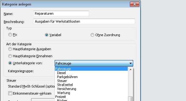 für die Kategorie ein. Legen Sie den Typ (Fix oder