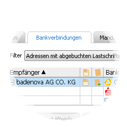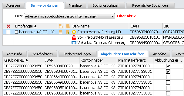 Filtern Sie die Liste der Bankverbindungen, dass nur diejenigen angezeigt werden, bei denen es abgebuchte Lastschriften gibt.