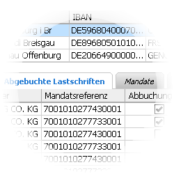 Abgebuchte LastschriftenMandatsreferenz, Gläubiger-ID und IBAN bilden in der neuen Version bei Lastschriftabbuchungen jeweils eine eigene logische Einheit. Sie können dadurch die über ein Lastschrift-Mandat autorisierten Abbuchungen im Kontenblatt und in der Liste der abgebuchten Lastschriften sehr genau analysieren.