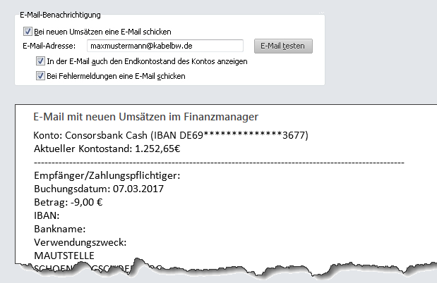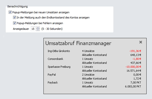 Die Anzeige einer Benachrichtigung kann individuell eingestellt werden. Sie entscheiden, ob der Endkontostand und wie lange die Meldung angezeigt wird.