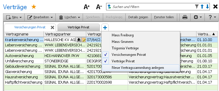 In dieser Ansicht verwalten Sie Ihre Verträge und