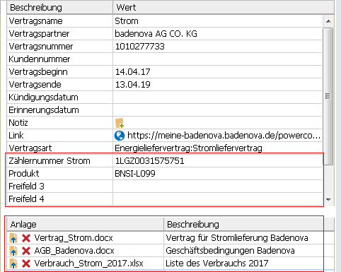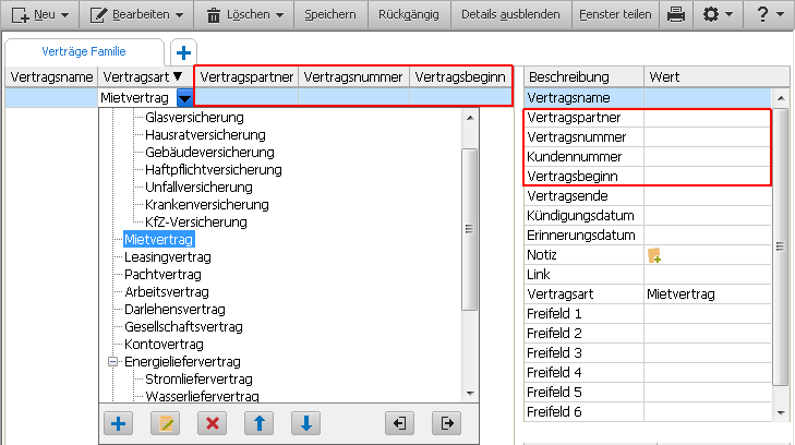 Erfassen Sie bei Verträgen, die Sie zu einem