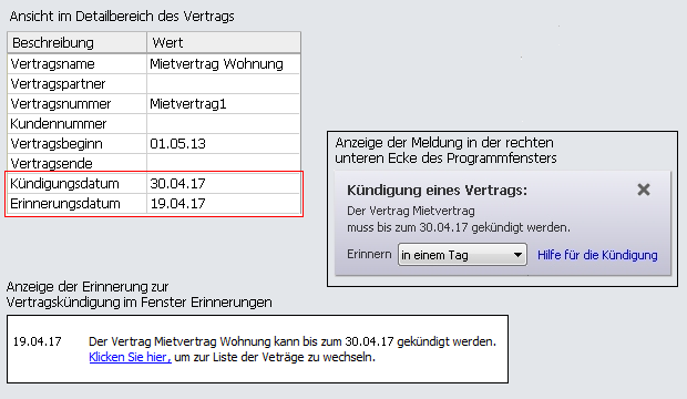 werden) sowie ein Erinnerungsdatum (also das Datum, an