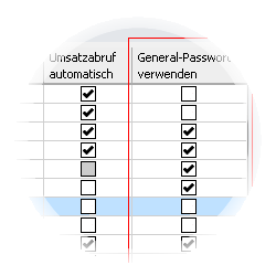 Wenn Sie die Einstellung General-Passwort verwenden, legen Sie fest für welche Konten Sie diese Methode zur Autorisierung von Online-Vorgängen verwenden möchten.