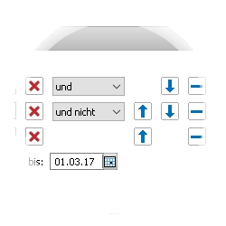 Auch in der Suche können Sie nun den Operator und nicht verwenden, um Feldinhalte auszuschließen. Zusätzlich können Sie die Suchbedingungen gegeneinander verschieben. |