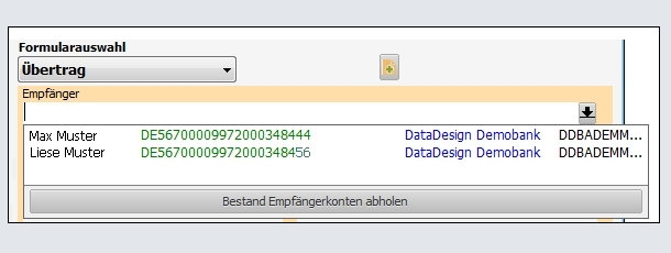Empfängerkonten abholen. Danach nur noch, falls Sie