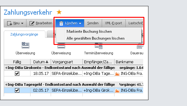 Sie in einem Zug mehrere Lastschriften löschen
