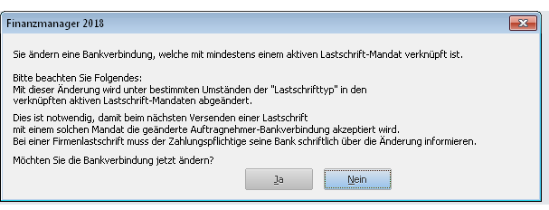 Person nicht ändert), Änderung der Kontoverbindung bei