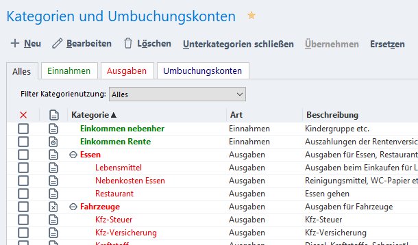 Kategorien - Einnahmen und Ausgaben