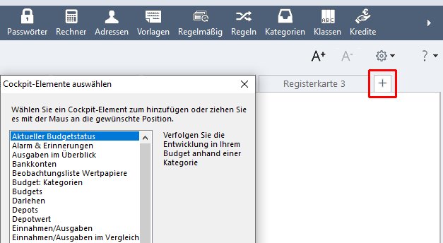 Cockpit-Elemente hinzufügen