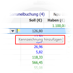 Im Abgleichsfenster kann nach der Übernahme bzw. Zuordnung eines Umsatzes eine Kennzeichnung vorgenommen werden.
