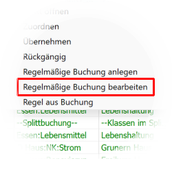 Wählen Sie dazu im Kontextmenü den Eintrag Regelmäßige Buchung bearbeiten. Anschließend erscheint eine Meldung mit der Frage, ob der Betrag der regelmäßigen Buchung angepasst werden soll.