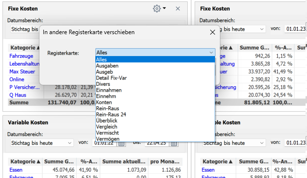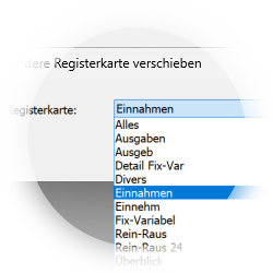Dabei wird das markierte Element in die ausgewählte Registerkarte verschoben.