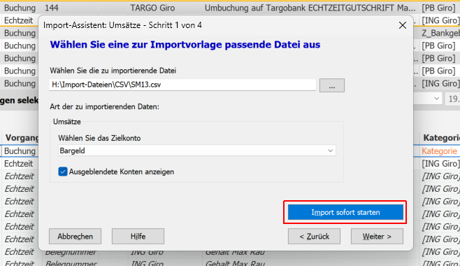 Der Import von Buchungen erfolgt mit nur einem einzigen KlickAnstatt vier Schritte durchzuführen, genügt jetzt ein Klick. Sowohl die Auswahl des Spaltenformats als auch die manuelle Feldzuordnung sind nicht mehr erforderlich.