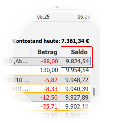 Wenn durch die Anpassung der Datumsbereiche oder der Kategorien nicht alle Buchungen berücksichtigt werden, weicht der angezeigte Stand vom echten Kontostand ab.