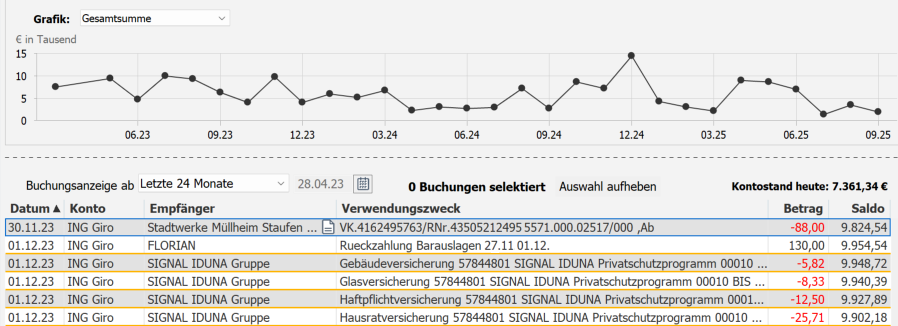 Jede Form der Filterung führt dazu, dass die Standanzeige vom tatsächlichen Kontostand abweicht.