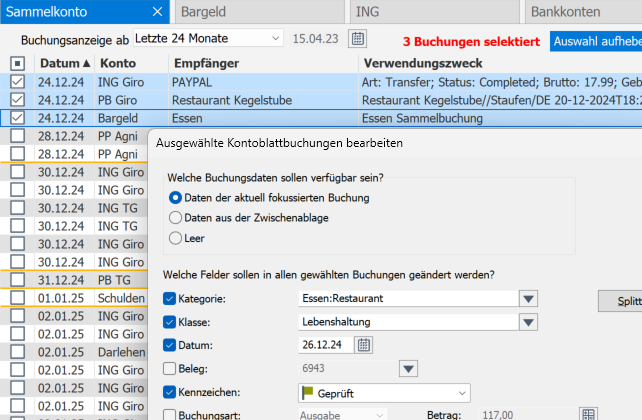 Gleichzeitige Bearbeitung mehrerer Buchungen im Sammelkonto